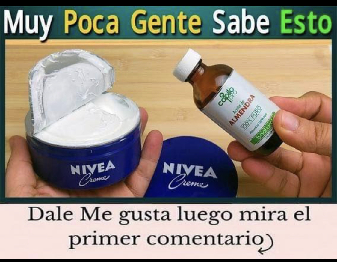 Solo junta Crema Nivea con Aceite de almendras y cuando la pongas en el rostro me recordarás siempre. Te queremos felicitar por haberte decidido a aprender a elaborar estos remedios con nosotras y esperamos que te sientas satisfecha con los resultados obtenidos que solo nosotros podemos darte, recuerda compartir si te gusto que tengas un feliz día mira el video.