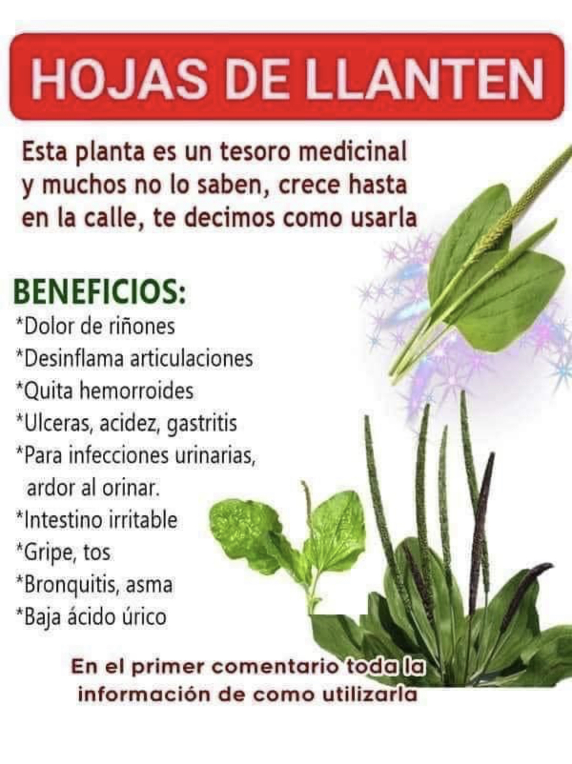El llantén es una planta con muchos usos medicinales. Contiene vitamina C, fortalece el sistema inmunológico , es un maravilloso cicatrizante y otros múltiples beneficios para nuestra salud, hacen que esta planta medicinal siempre debería estar en casa para tratar y prevenir diferentes problemas de salud.